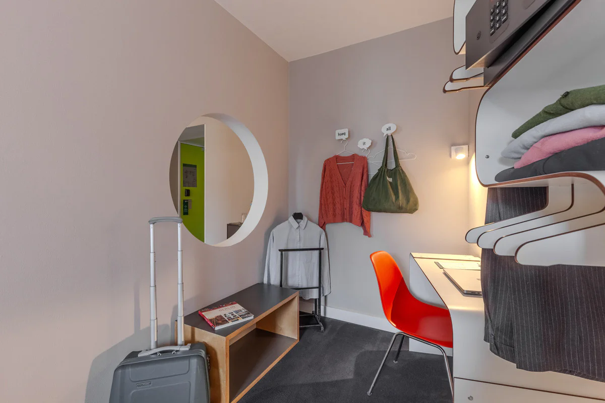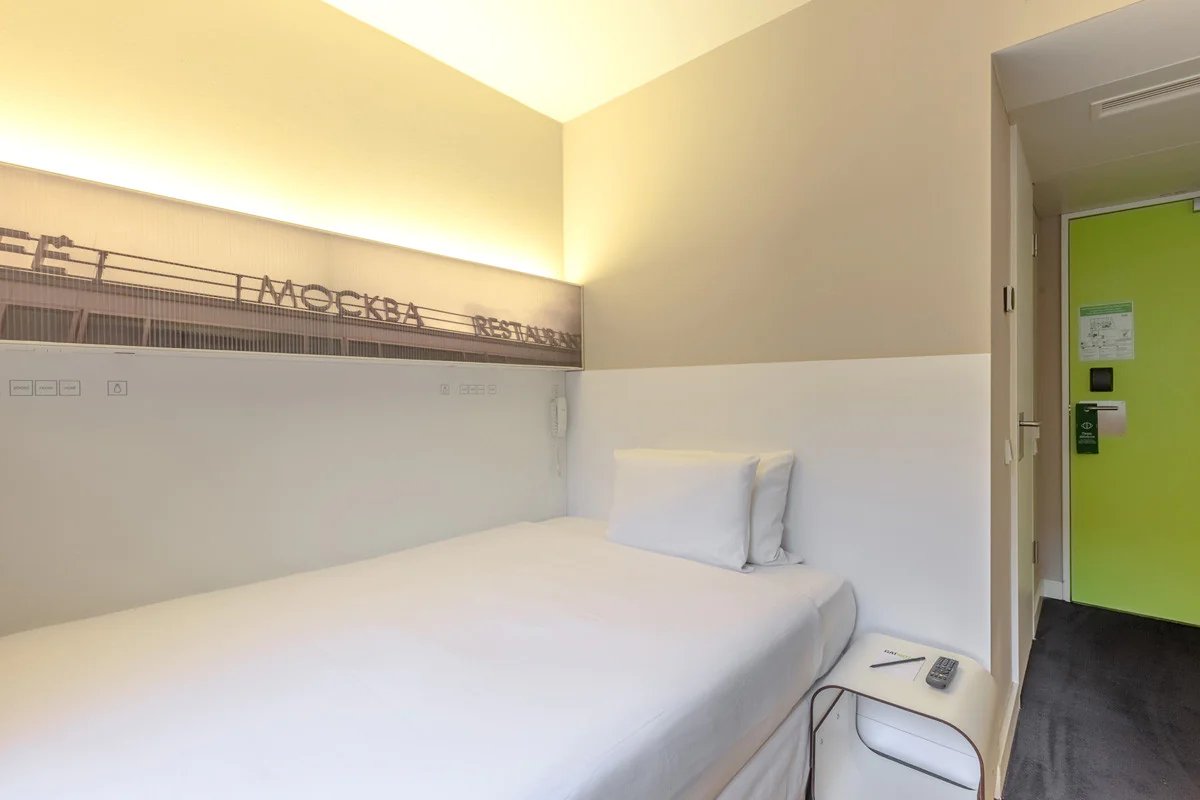 Kompakt und funktional, entworfen, um unkomplizierten Schlaf zu bieten. Ideal für Geschäftsaufenthalte.
