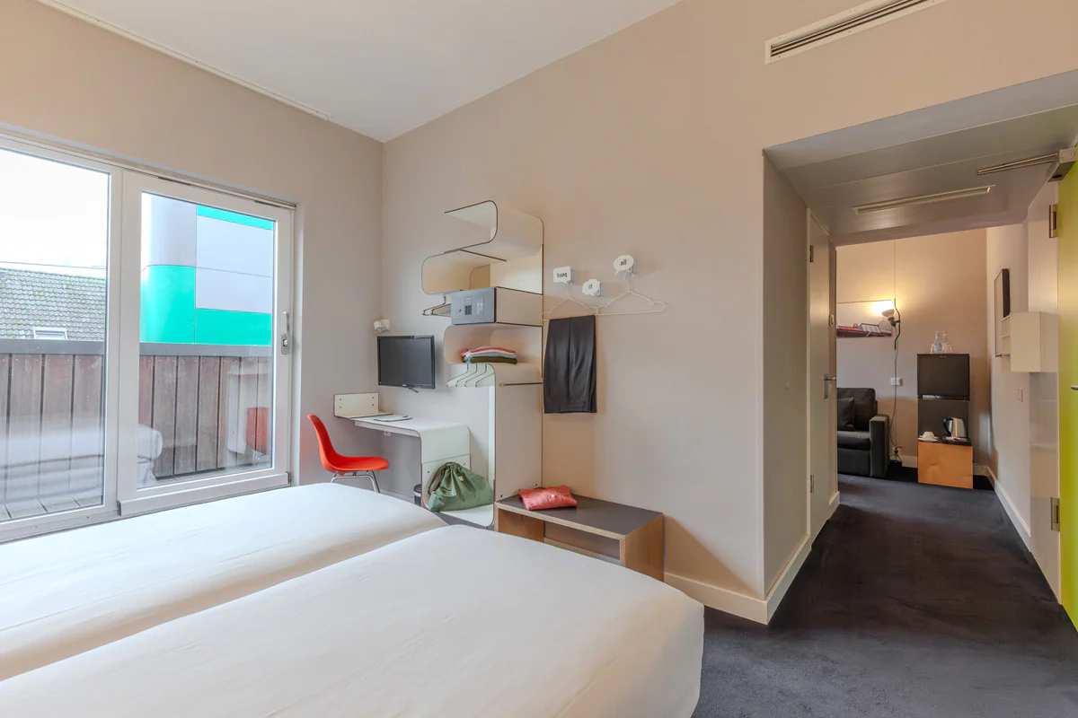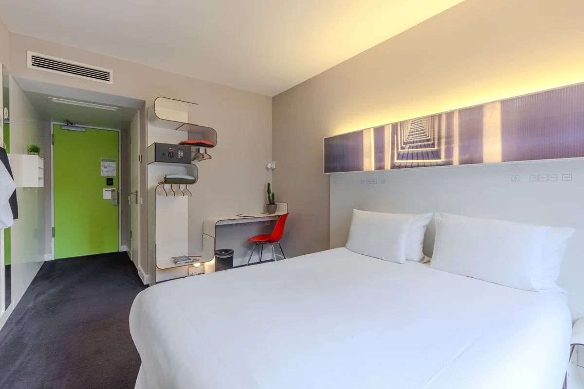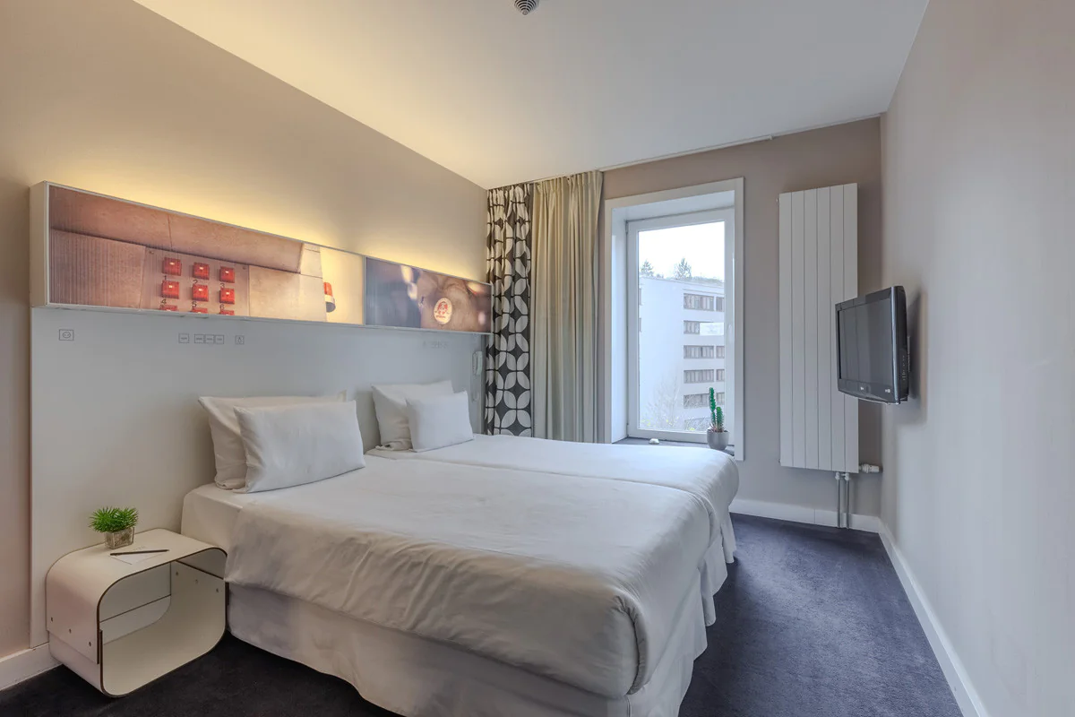 Praktisch, hell und sehr bequem. Es verfügt über alles, was man für einen angenehmen und funktionalen Aufenthalt benötigt. Mit 20m2 kannst du zwischen einem Doppelbett oder zwei Einzelbetten wählen, je nach deinen Bedürfnissen. Die perfekte Option für Geschäftsreisen oder Pausen zu zweit.