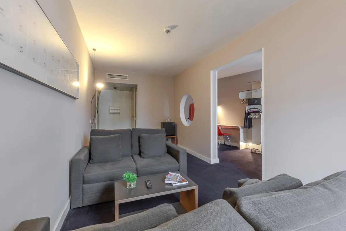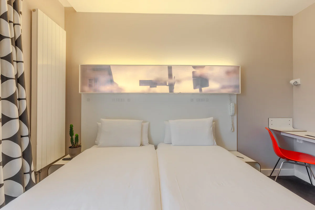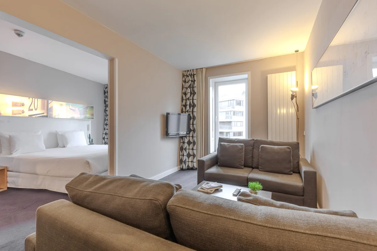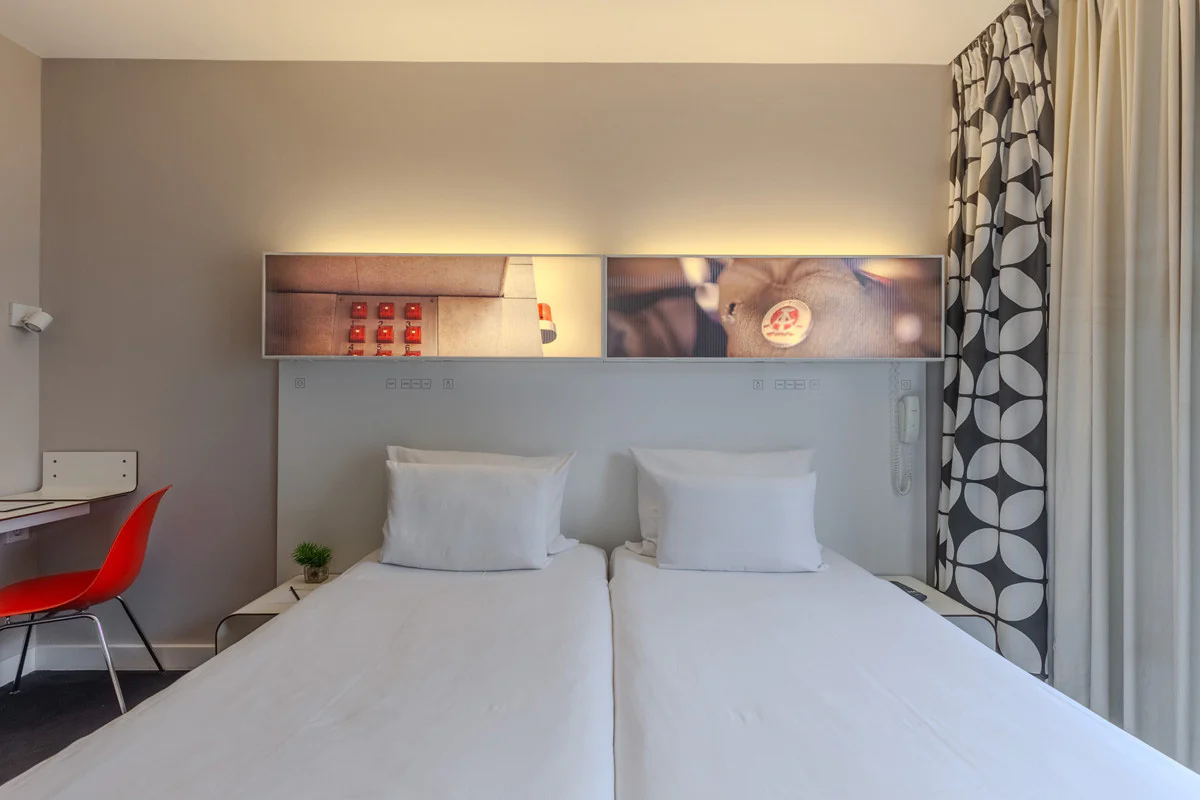 Praktisch, hell und sehr bequem. Es verfügt über alles, was man für einen angenehmen und funktionalen Aufenthalt benötigt. Mit 20m2 kannst du zwischen einem Doppelbett oder zwei Einzelbetten wählen, je nach deinen Bedürfnissen. Die perfekte Option für Geschäftsreisen oder Pausen zu zweit.