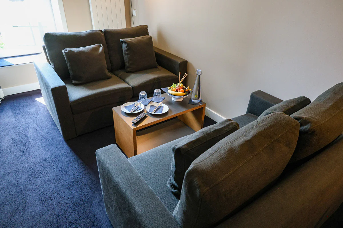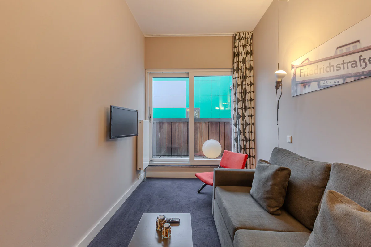 Perfekt für längere Aufenthalte oder für diejenigen, die mehr Platz möchten, alles verpackt in einem kreativen und modernen Design. Mit separatem Wohnzimmer, XL-Bett und der Option, ein zusätzliches Bett hinzuzufügen.